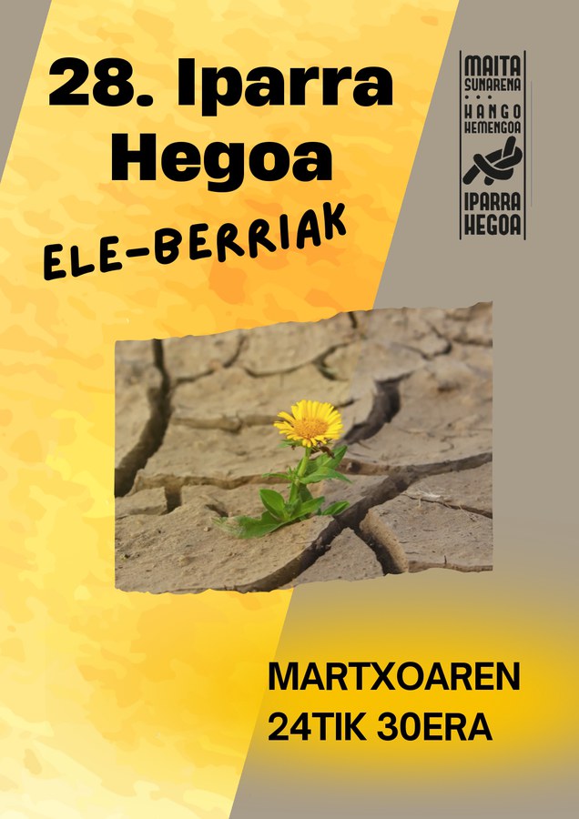 28. Iparra Hegoa Events & festivals Basque culture Date 2025-03-24 - 2025-03-30 Town Urrugne Segura Language Euskara With the collaboration of the Basque cultural institute Agenda event "BASQUE CULTURE IN THE FAMILY" Further details 28. Iparra Hegoa - Egitarau osoa (pdf) Cultural player(s) Iparra Hegoa Receive our free agenda The Basque cultural agenda (weekly) Suscribe