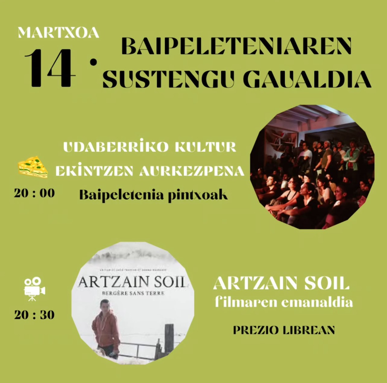 - Lucie Francini & Sabina Hourcade egileen Artzain soil filmaren proiekzioa