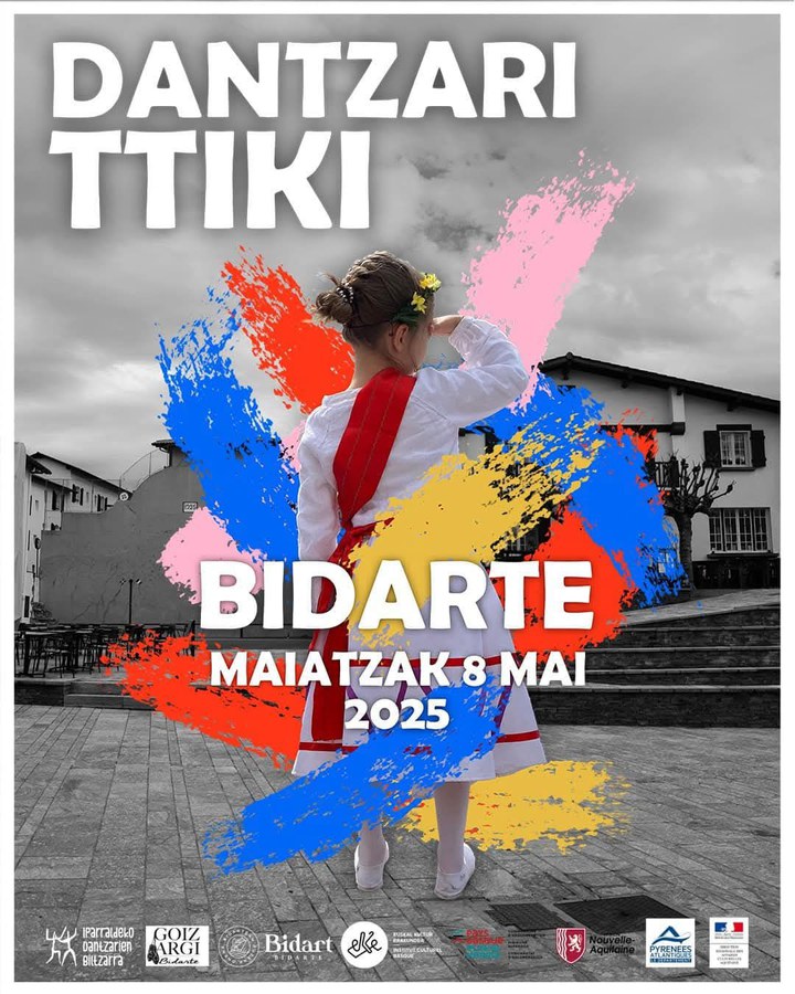 Dantzari Ttiki Events & festivals Dance Date 2025-05-08 Town Bidart With the collaboration of the Basque cultural institute Agenda event "BASQUE CULTURE IN THE FAMILY" © IDB Cultural player(s) Iparraldeko Dantzarien Biltzarra Receive our free agenda The Basque cultural agenda (weekly) Suscribe