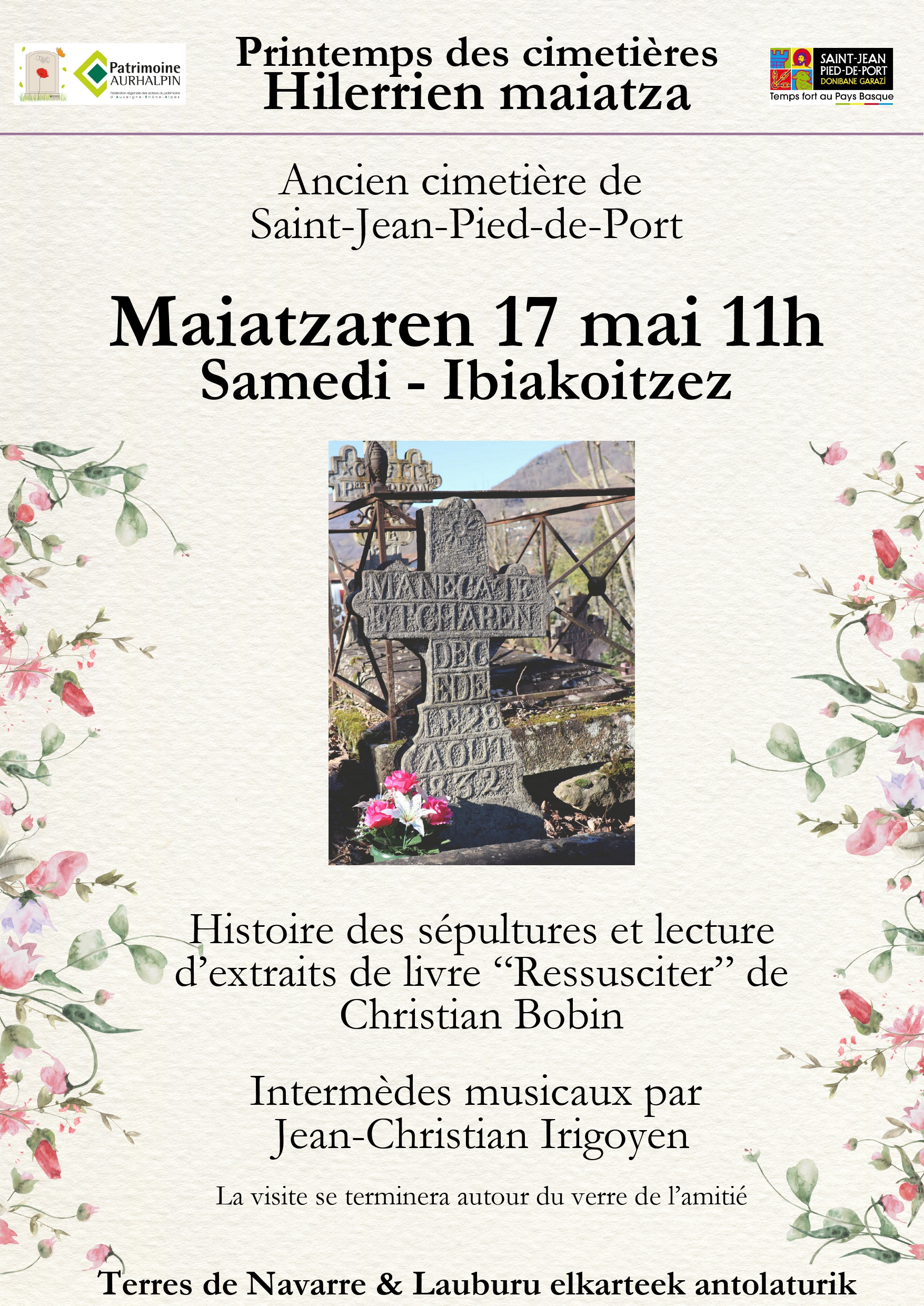 Hilerrien maiatza kari, ibilaldi poetiko eta musikal bati esker, obren aintzinatzea deskubritzeko paradea izanen da. Hamar bat hilobien istorio kondatuko dituzte, Jean-Christian Irigoyenek musikan ezarririk, Christian Bobin-ren Ressusciter liburutik zatien irakurketa partekatuarekin.