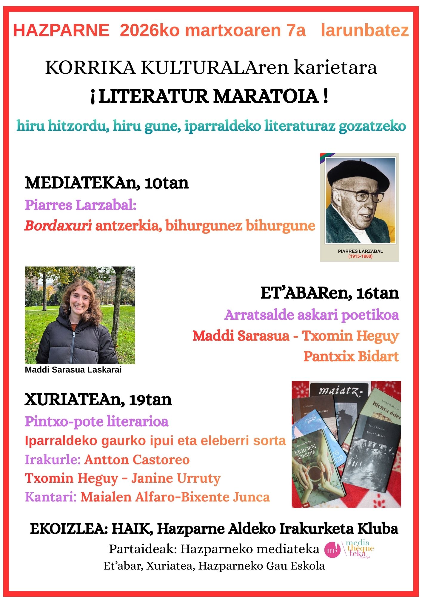 - 19:00etan, Xuriatean: pinto-pote literarioa: iparraldeko gaurko ipui eta eleberri sorta