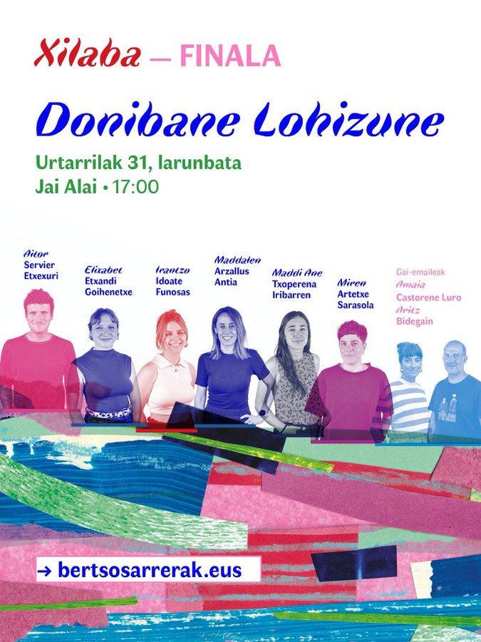 Xilaba - Finala Duel of improvisers Bertsularismo Date 2026-01-31 Town Saint-Jean-de-Luz (Jai Alai) Schedule 17:00 Language Euskara With the collaboration of the Basque cultural institute Agenda event "BASQUE CULTURE IN THE FAMILY" Cultural player(s) Bertsularien lagunak Receive our free agenda The Basque cultural agenda (weekly) Suscribe