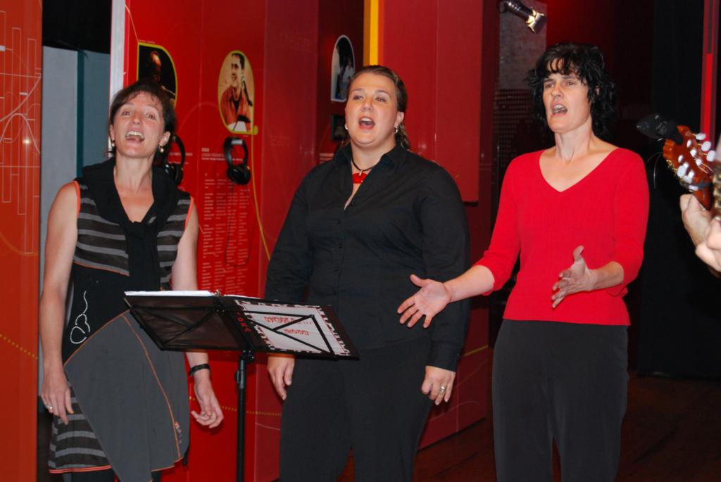 Noka taldeko bi kide eta Kantiruki taldeko kantari bat