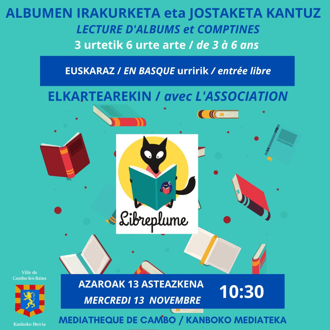 Albumen irakurketa eta jostaketa kantuz Libreplume elkartearekin 3 urtetik 6 urte arteko haurrentzat