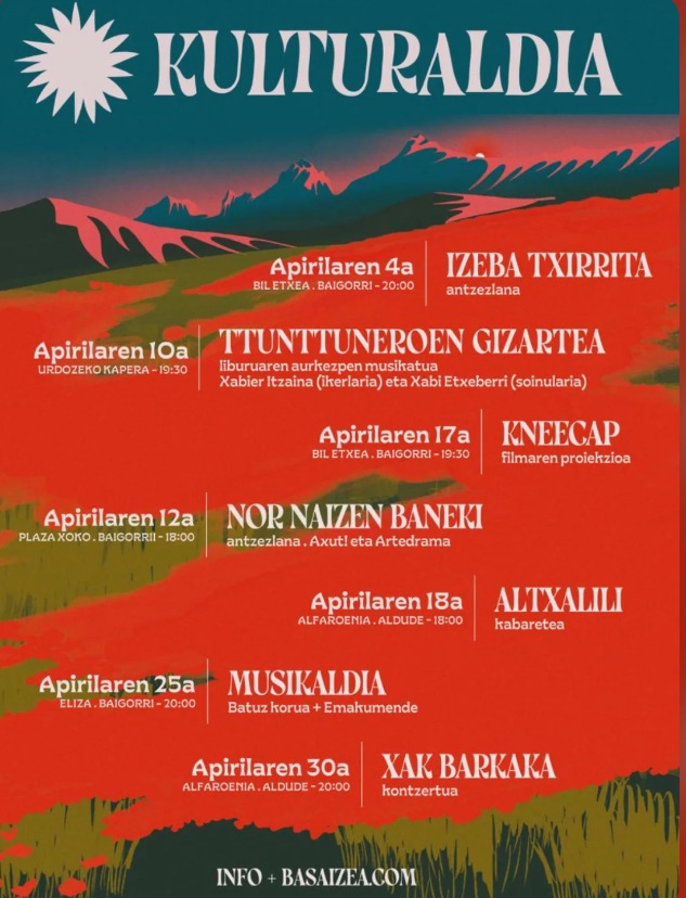 Egitarauan, Izeba txirrita antzezlana, Ttunttuneroen gizartea liburuaren aurkezpena, Kneecap filmaren proiekzioa, Nor naizen baneki antzezlana, Altxalili kabaretea, Musikaldia, Xak babarka...