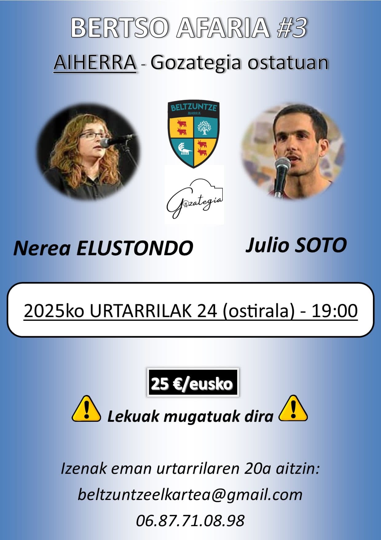 Izen emateak: 06 87 71 08 98 / beltzuntzeelkartea@gmail.com