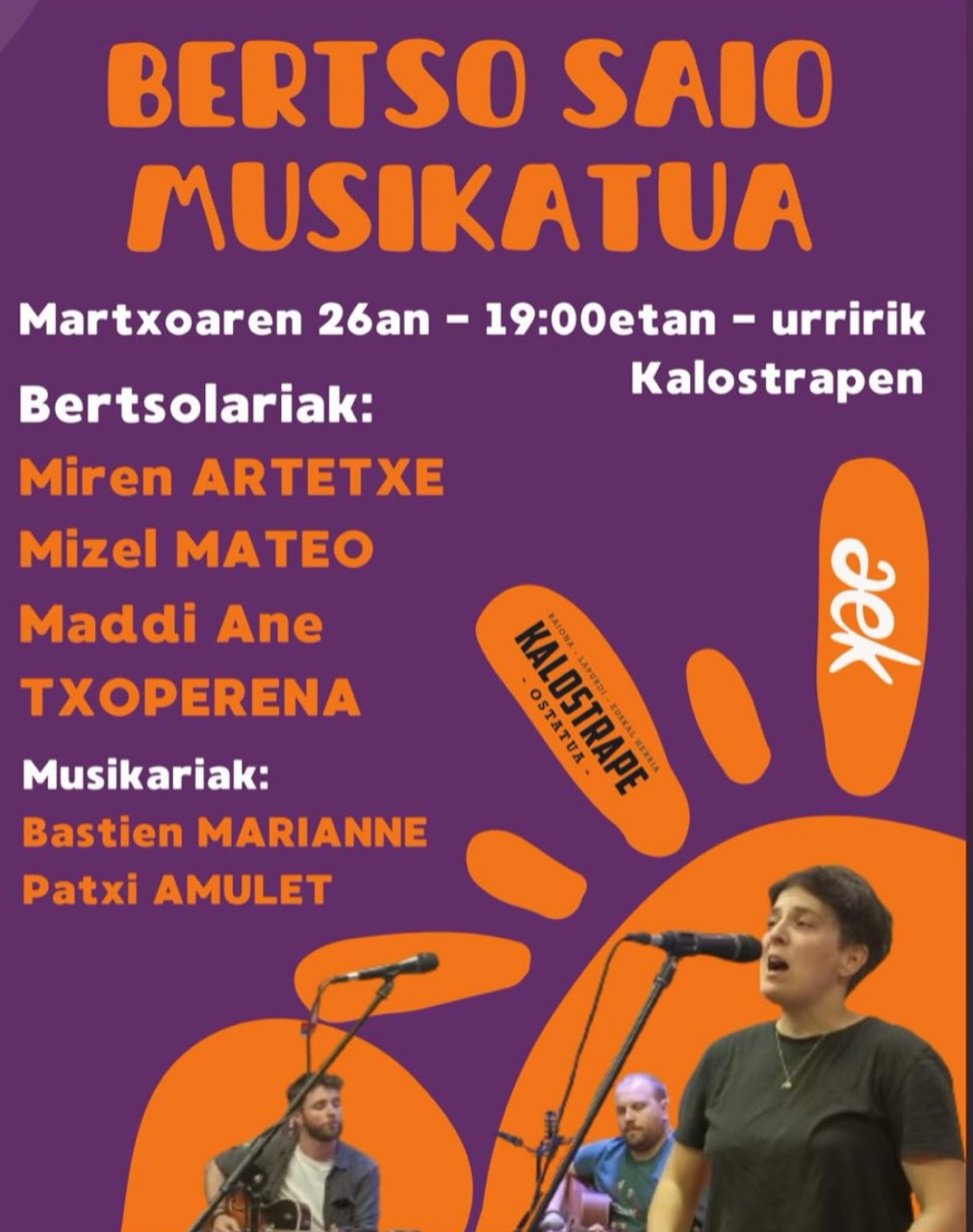 - Bertsolariak: Miren Artetxe, Mizel Mateo, Maddi Ane Txoperena