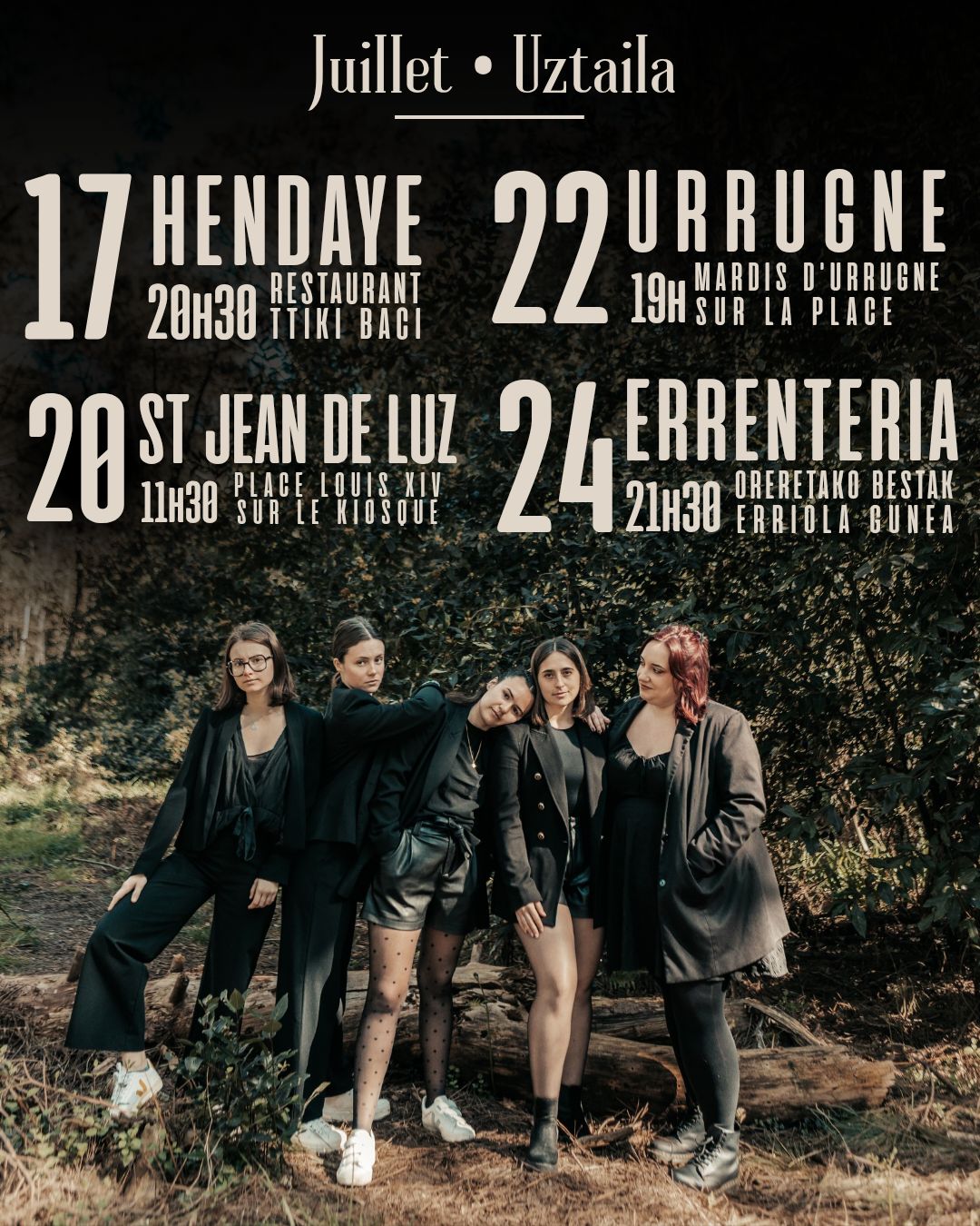 Bost Axola Concierto Música Fecha 2025-07-22 Municipio Urrugne (Plaza) Horario 19:00 Idioma Euskera Evento de la agenda "CULTURA VASCA EN FAMILIA" Actores culturales Bost Axola Reciba gratuitamente nuestra agenda: Agenda de la cultura vasca (una vez a la semana) Suscribirse
