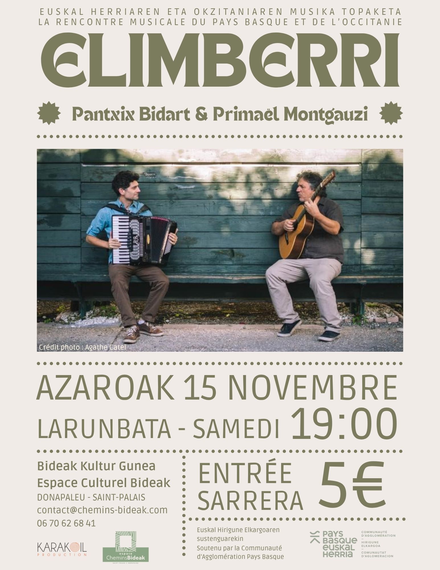 Pantxix Bidart eta Primaël Montgauzík sortu Elimberri ikusgarria bi kultura ahaideen arteko topaketa da. Bi artistek mintzarazten dituzte, kantarazten, gaurko harmonian, heien aspaldiko zuhurtzia gure mundu garaikidean erakutsi nahian. Denboratik kanpo gabiltza, supazter xokoan bezala, musikak, ipuinek, mitoetan murgildurik, hitzen eta kanten goxotasunean.