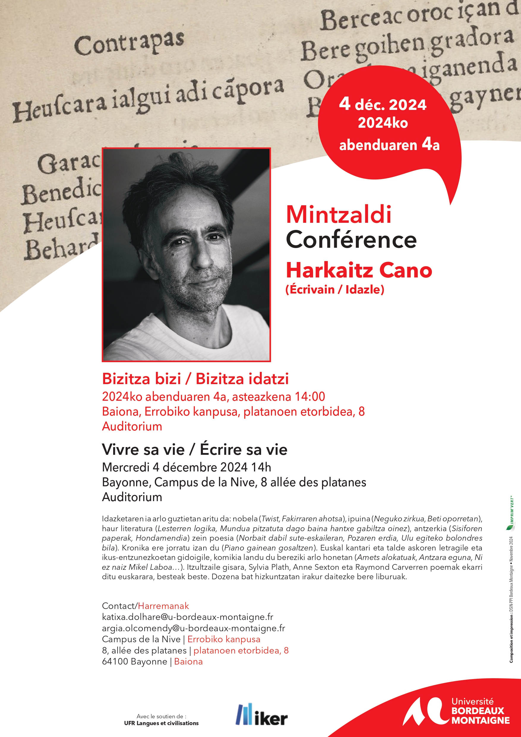 Harremanak: katixa.dolhare@u-bordeaux-montaigne.fr / argia.olcomendy@u-bordeaux-montaigne.fr