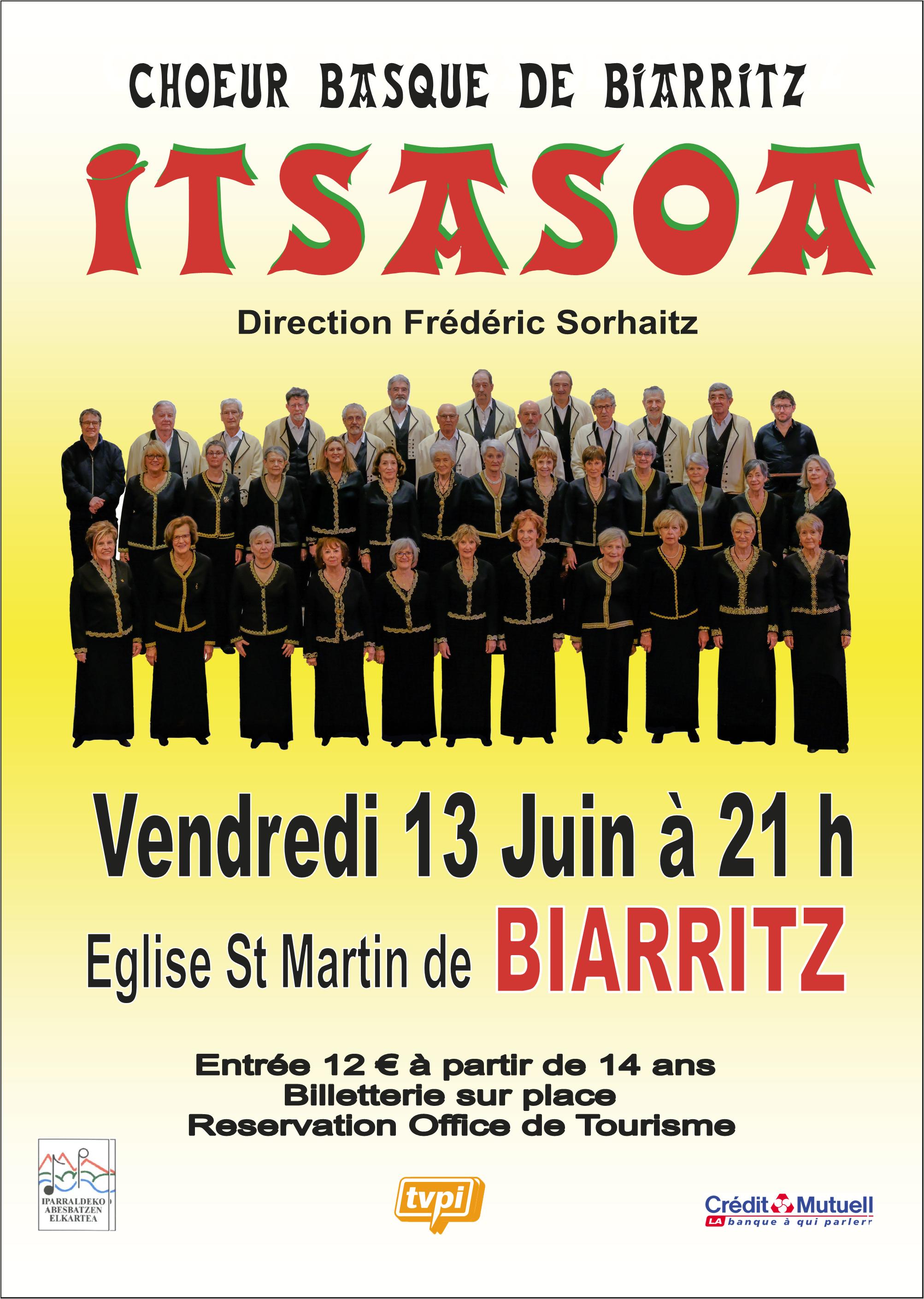 Itsasoa Concierto Canto coral Fecha 2025-06-13 Municipio Biarritz (San Martin eliza) Horario 21:00 Idioma Euskera Precio 12 € (urririk 14 urtez pekoentzat) Más información Tokiak salgai Turismo Bulegoan edo tokian berean Reciba gratuitamente nuestra agenda: Agenda de la cultura vasca (una vez a la semana) Suscribirse