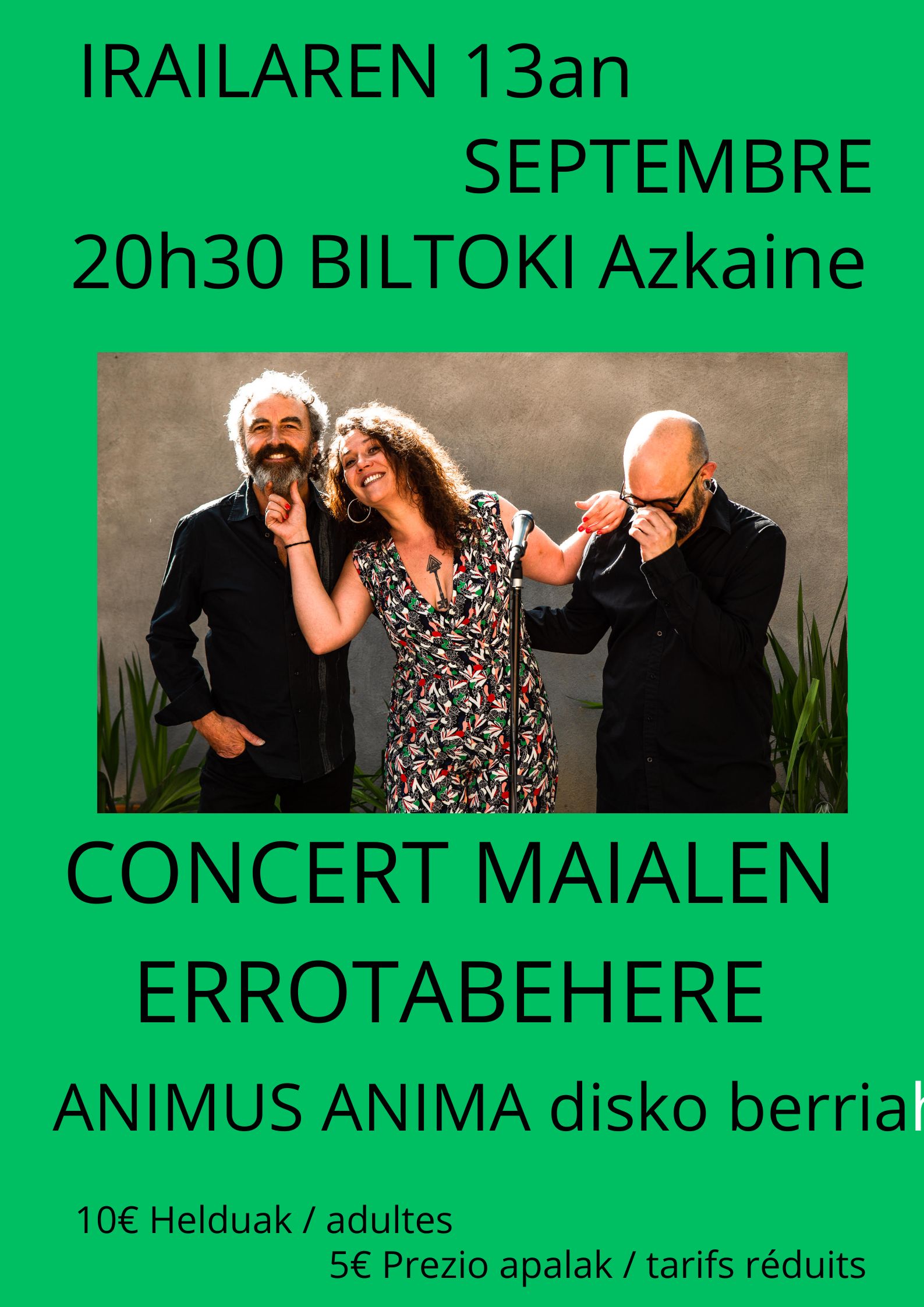 Maialen Errotabehere Concierto Música Fecha 2024-09-13 Municipio Ascain (Biltoki) Horario 20:30 Idioma Euskera Precio 10 € / 5 € Evento de la agenda "CULTURA VASCA EN FAMILIA" © Mathieu Prat Actores culturales Maialen Errotabehere Reciba gratuitamente nuestra agenda: Agenda de la cultura vasca (una vez a la semana) Suscribirse