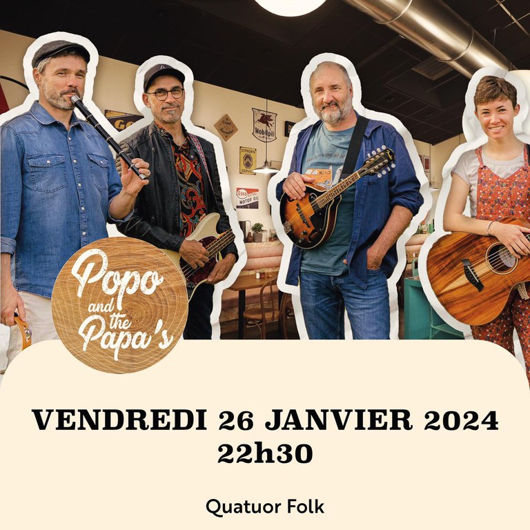 Popo & the Papa’s Concierto Música Fecha 2024-01-26 Municipio Ustaritz (Bar Garage des Pyrénées) Horario 22:30 Idioma Euskera | Francés Precio Entrée libre © Romain Roger Affiche Actores culturales Jon Itçaina Pauline Junquet Reciba gratuitamente nuestra agenda: Agenda de la cultura vasca (una vez a la semana) Suscribirse