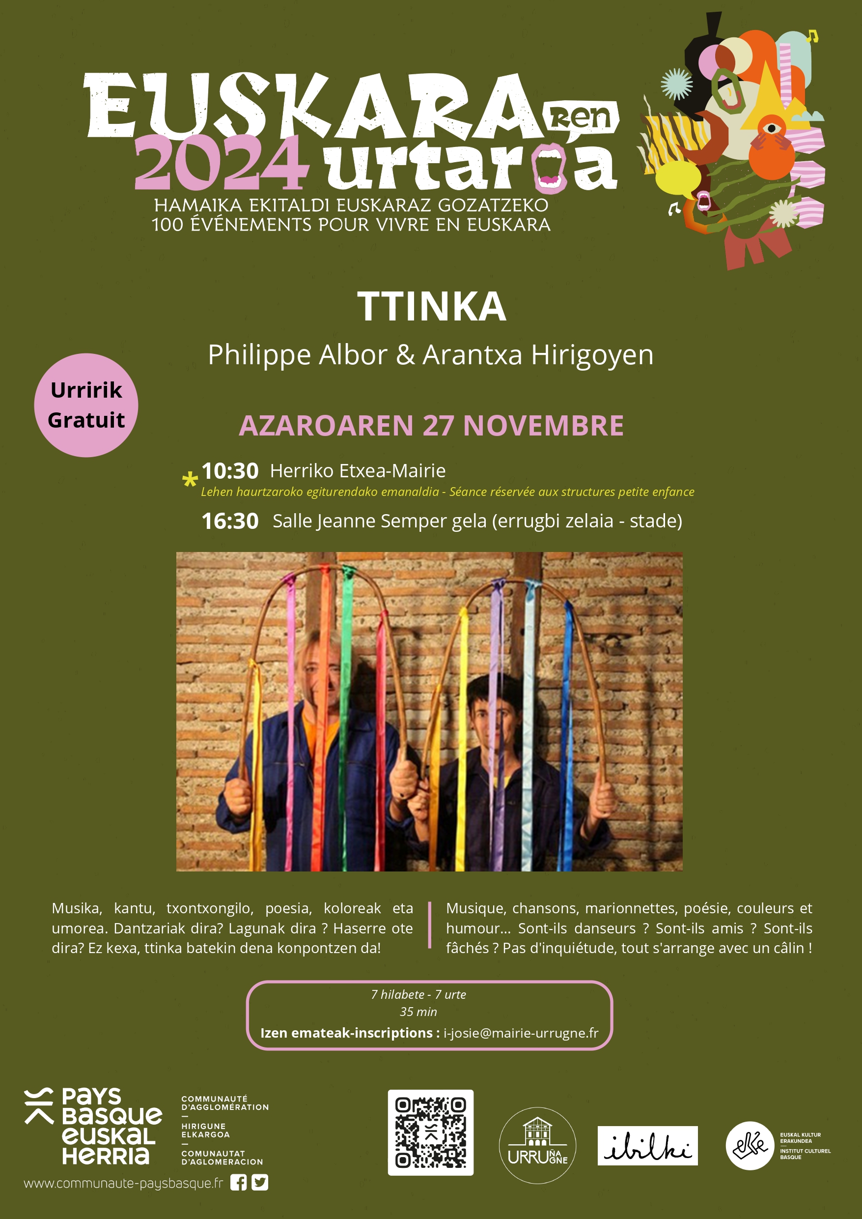 Diska liburuxka proiektu huni loturik, Ttinka izen bereko ikusgarri ikusgarri honek musika, poesia, mimoa, kantua, objektu antzerkia eta emozioak uztartzen ditu. Euskara lantzeko, gozatzeko eta maitatzeko.