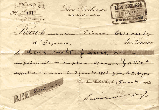 Bidaiatzeko ordainagiria - Reçu d'embarquement (collection particulière)