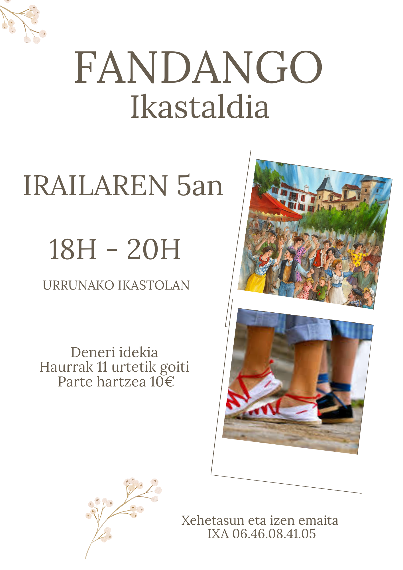 Fandango ikastaldia Ikastaroak & formakuntzak Dantza Data 2025-09-05 Herria Urruña (Ikastola) Tenorea 18:00-20:00 Hizkuntza Euskara Prezioa 10 € "Kultura familian" agendako gertakaria Argazkia: Xabi Berrouet 11 urtez goitikakoentzat Xehetasunak Izen emateak: 06 46 08 41 05 Kultura agenda eskuratu emailez Euskal kulturaren agenda (Astero) Harpidetu
