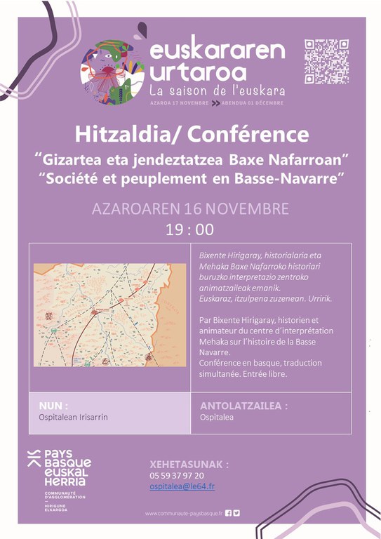 Gizartea eta jendeztatzea Baxe Nafarroan hitzaldia Bixente Hirigaray-k emanik