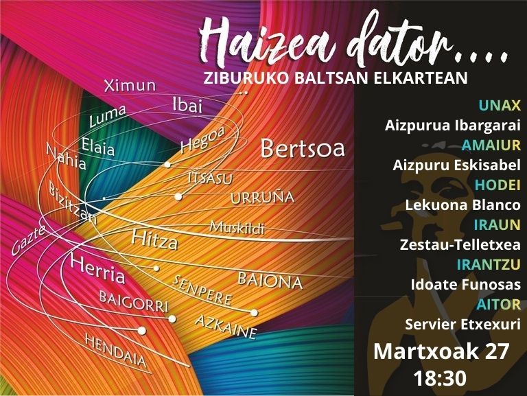 Bertsolariak: Unax Aizpurua Ibargarai, Amaiur Aizpuru Eskisabel, Hodei Lekuona Blanco, Iraun Zestau-Telletxea, Irantzu Idoate Funosas, Aitor Servier Etxexuri