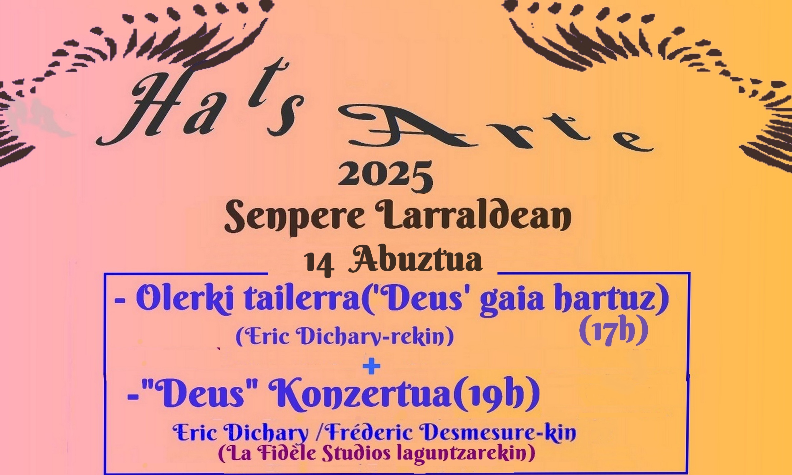 - 19:30: "Deus" kontzertua, Eric Dicharry eta Frédéric Desmesure-rekin