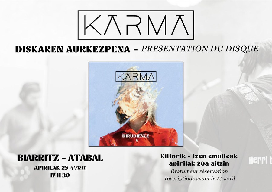 Karma Kontzertuak Musika Data 2025-04-25 Herria Biarritz (Atabal) Tenorea 17:30 Hizkuntza Euskara Prezioa Urririk "Dirudienez" disko berriaren aurkezpena. Xehetasunak Erreserbak Kultura eragileak Elkor Atabal Kultura agenda eskuratu emailez Euskal kulturaren agenda (Astero) Harpidetu