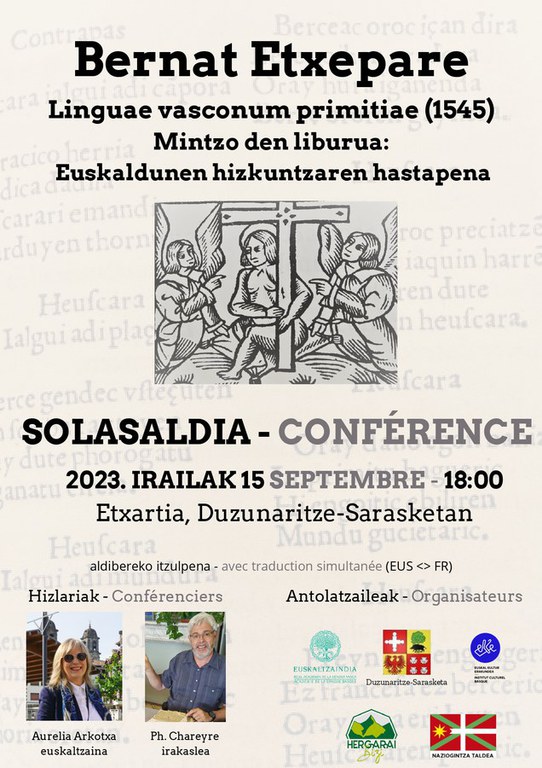Linguae Vasconum Primitiae (Euskaldunen hizkuntzaren hastapenak, Bordale, 1545), euskaraz argitaratutako lehen liburuaren egilearen historia eta lana ezagutzera eman nahi dituzte, Hergarai Bizi Egunen karietara, irailaren 15etik 17ra, Duzunaritzeko Herriko Etxeak, Naziogintza Taldeak, Euskal Kultur Erakundeak eta Euskaltzaindiak. Mintzaldi bat eskainiko da ostirale arratsez, Aurelia Arkotxa euskaltzainaren eta Philippe Chareyre historialariaren eskutik, eta omenaldi berezi bat eginen igande goizez, apaiz idazlearen sortetxearen aintzinean lehenik, eta herriko plazan ondotik. Bertan, Piarres Erdozaintzi-Etxarten eskultura bat estreinatuko da.