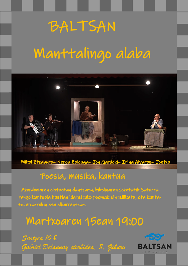 Manttalingo alaba poema liburuan oinarritutako emanaldi musikatua.