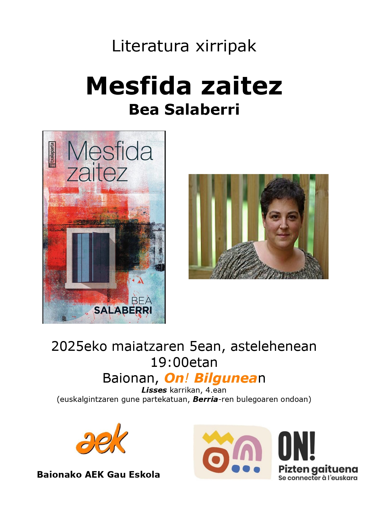 Bea Salaberriren Mesfida zaitez (Txalaparta, 2024) liburuaren aurkezpena