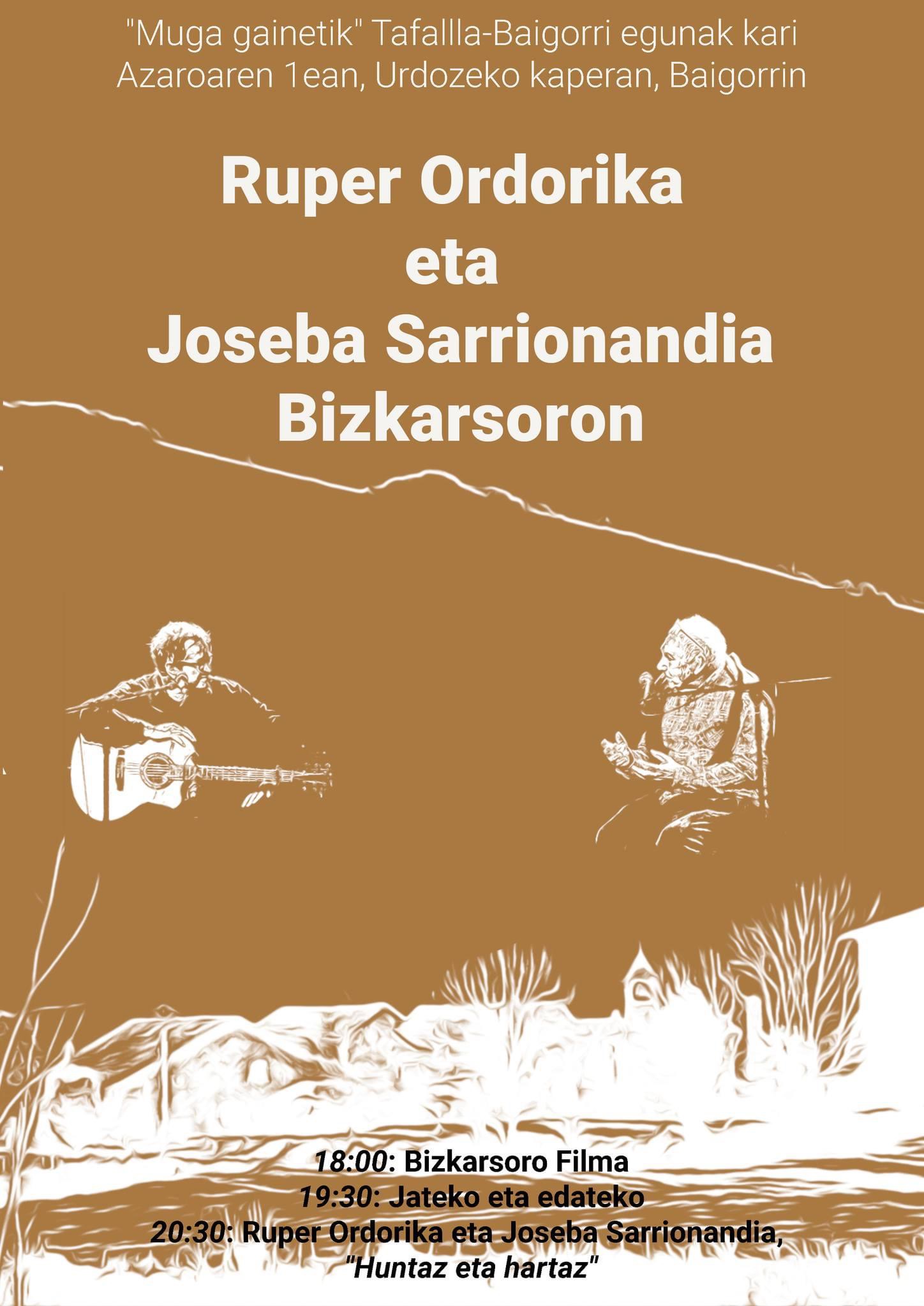 - 20:30: Ruper Ordorika eta Joseba Sarrionandia "Huntaz eta hartaz"