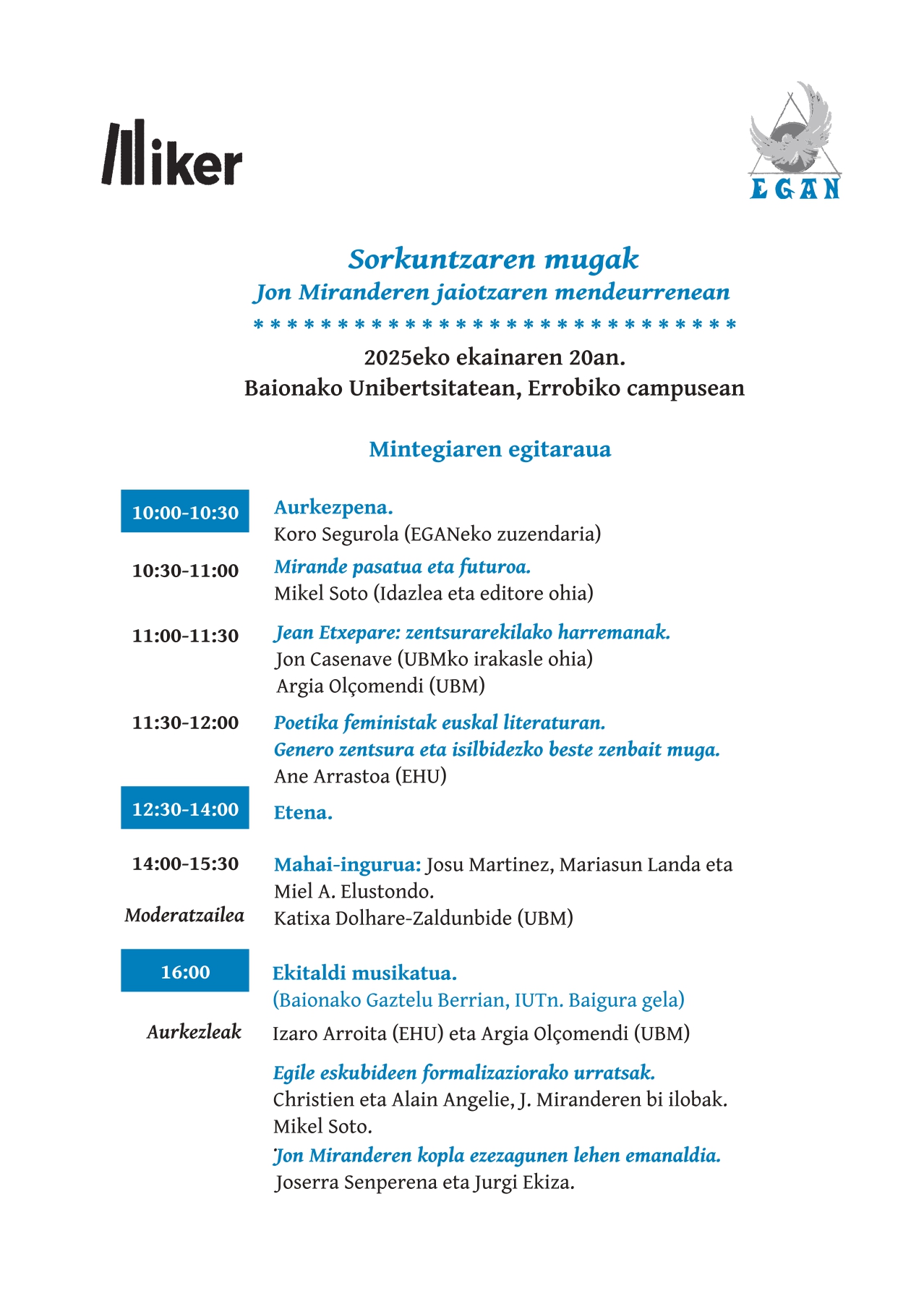 Sorkuntzaren mugak, Jon Miranderen jaiotzaren mendeurrenean