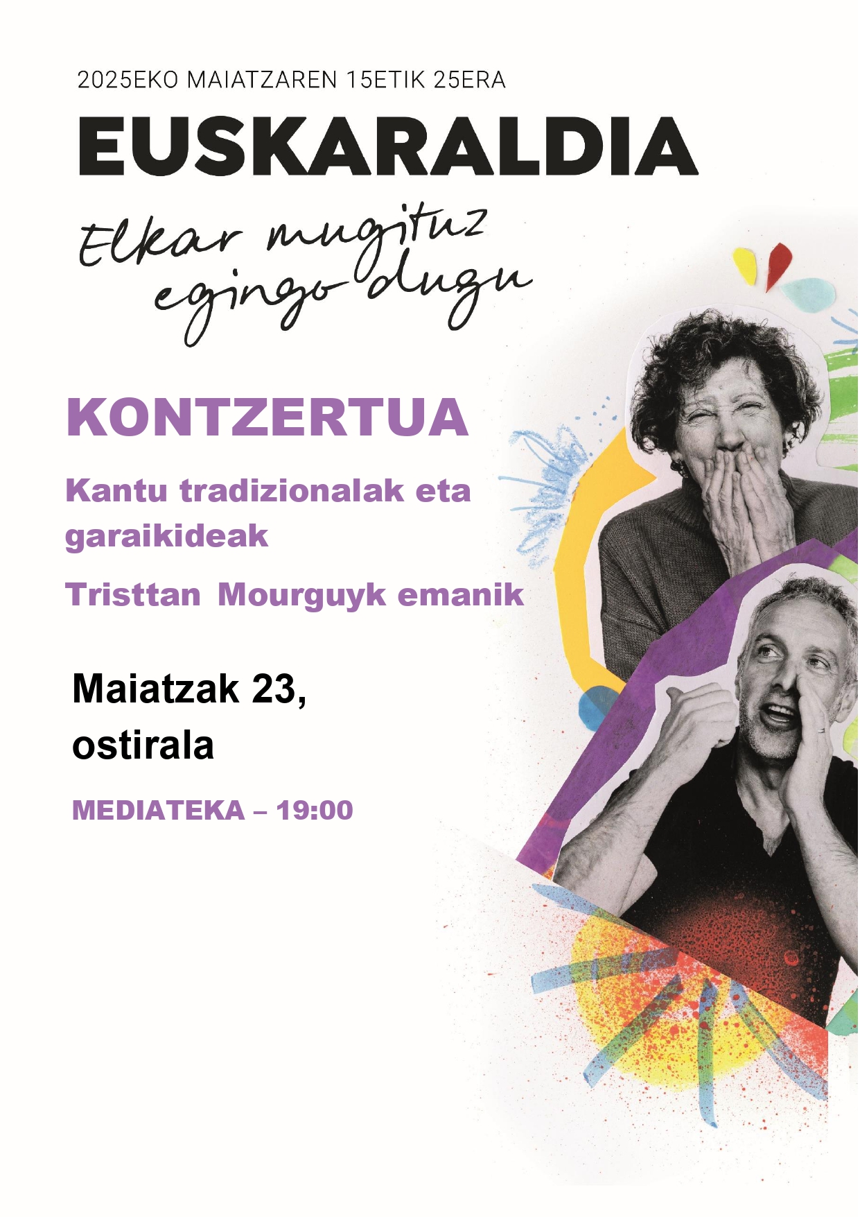 Tristtan Mourguy Kontzertuak Musika Data 2025-05-23 Herria Donibane Lohizune (Mediateka) Tenorea 19:00 Hizkuntza Euskara "Kultura familian" agendako gertakaria Bakarkako kontzertua Xehetasunak Euskaraldiaren karietara Kultura eragileak Tristtan Mourguy Donibane Lohizuneko Mediateka Kultura agenda eskuratu emailez Euskal kulturaren agenda (Astero) Harpidetu