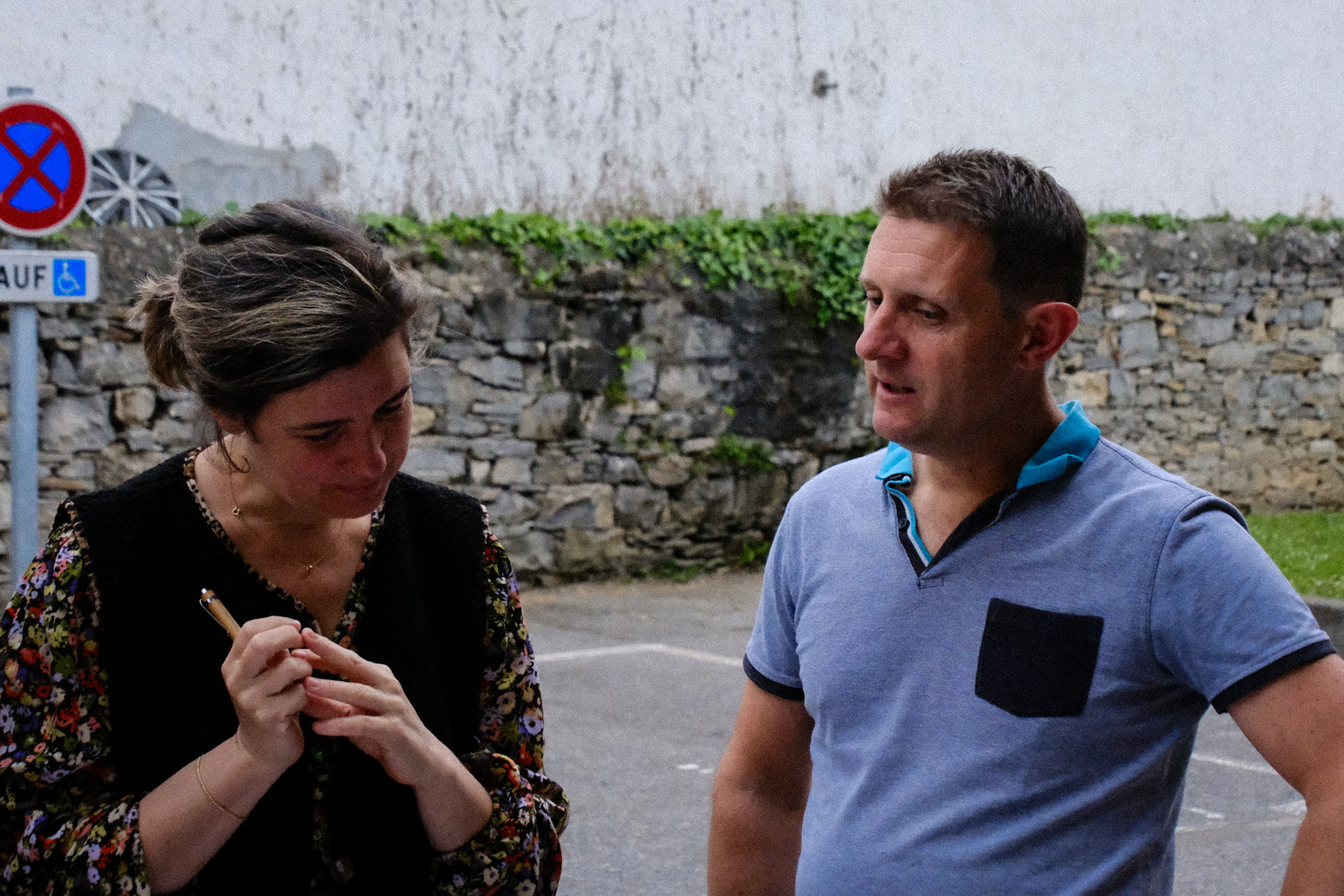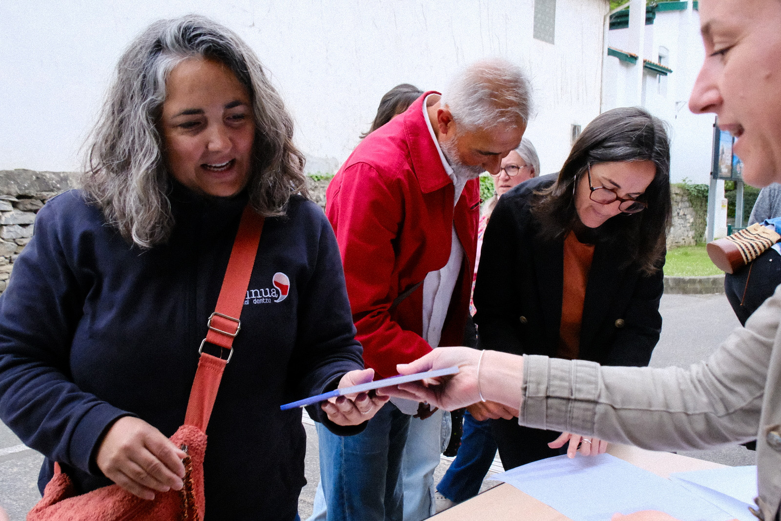 Pettan Aiçaguer, Donapaleuko auzapezak harrera egin die hurbildutakoei. Ondotik Katixa Dolhare-Çaldumbidek eraman du biltzarraren animazioa EKE-ko lehendakari gisa.