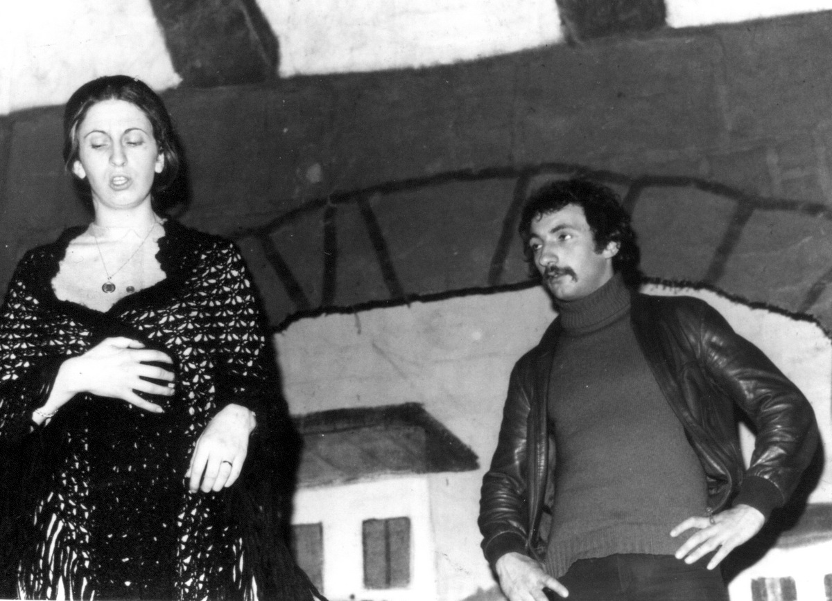 Xuri gorriak eta..Hazparneko Haritz-Barne aretoan, errepika batean. Ezkerrean zutik: Michel Brust, Jean-Michel Bide, Michel Bellecave, Martin Zabalçagaray. Jarririk: Ugutz Robles-Aranguiz, Maite Diratchette, X, X, X, X, Frantxua Diratchette. Bakarrik: Beñat Hitta. Eskuinean: Pierrot Fourcade, Daniel Landart (Jean-Pierre Lahirigoyen ordezkatzen zuena). Bizkarrez: Iker Gallastegi, zuzendaria.