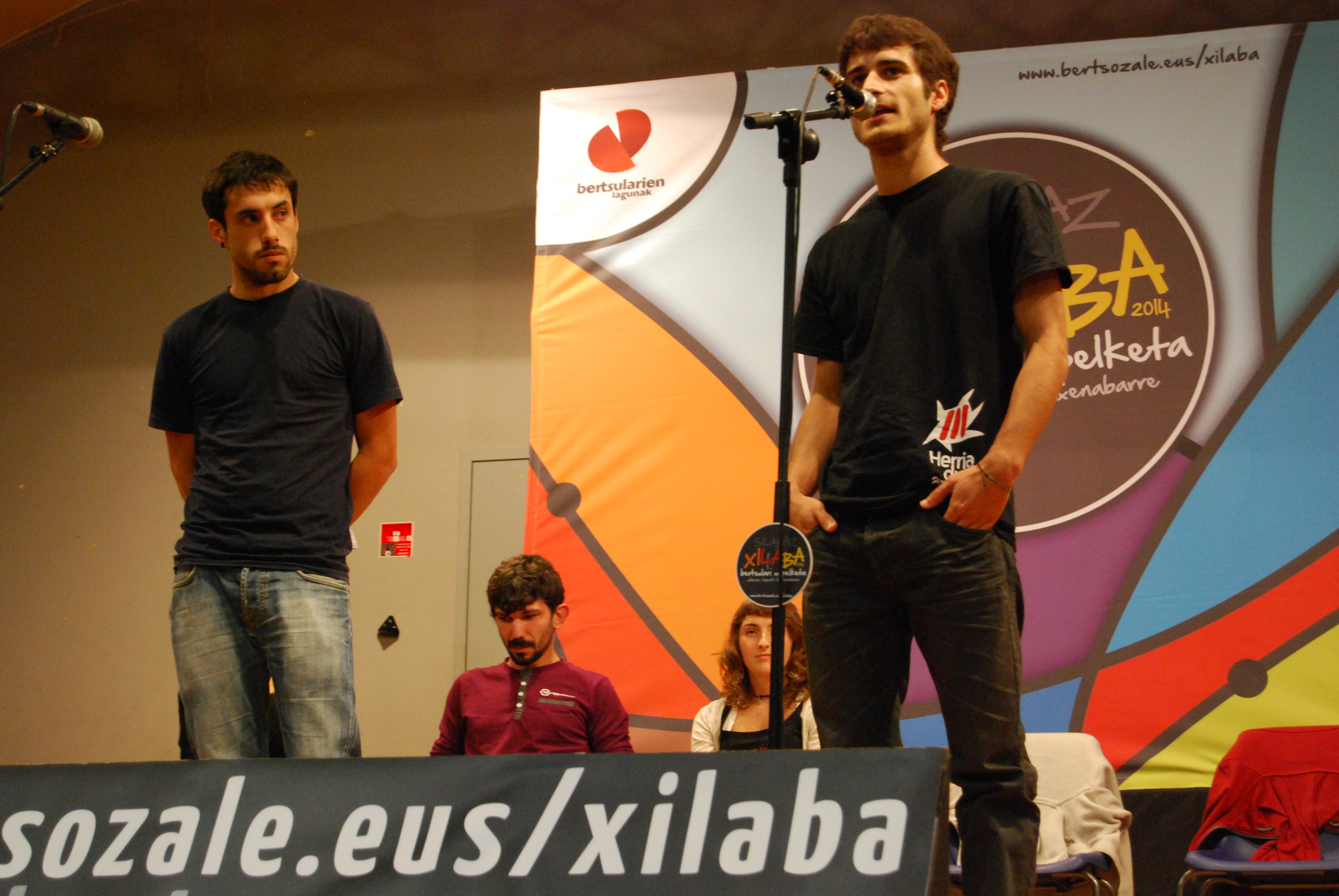 Larresoron 2014ko urriaren 26an iragan 1. finalerdiaren argazkiak (egilea: Maite Deliart - Euskal kultur erakundea). Bertsulariak: Maddi Sarasua, Xumai Murua, Ortzi Idoate, Xan Alkhat, Odei Barroso, Sustrai Colina. Gai-emaile: Maiana Irigoyen. Epaileak: Erik Etxart, Beñat Soulé, Joakin Arregi, Eneko Bidegain.
