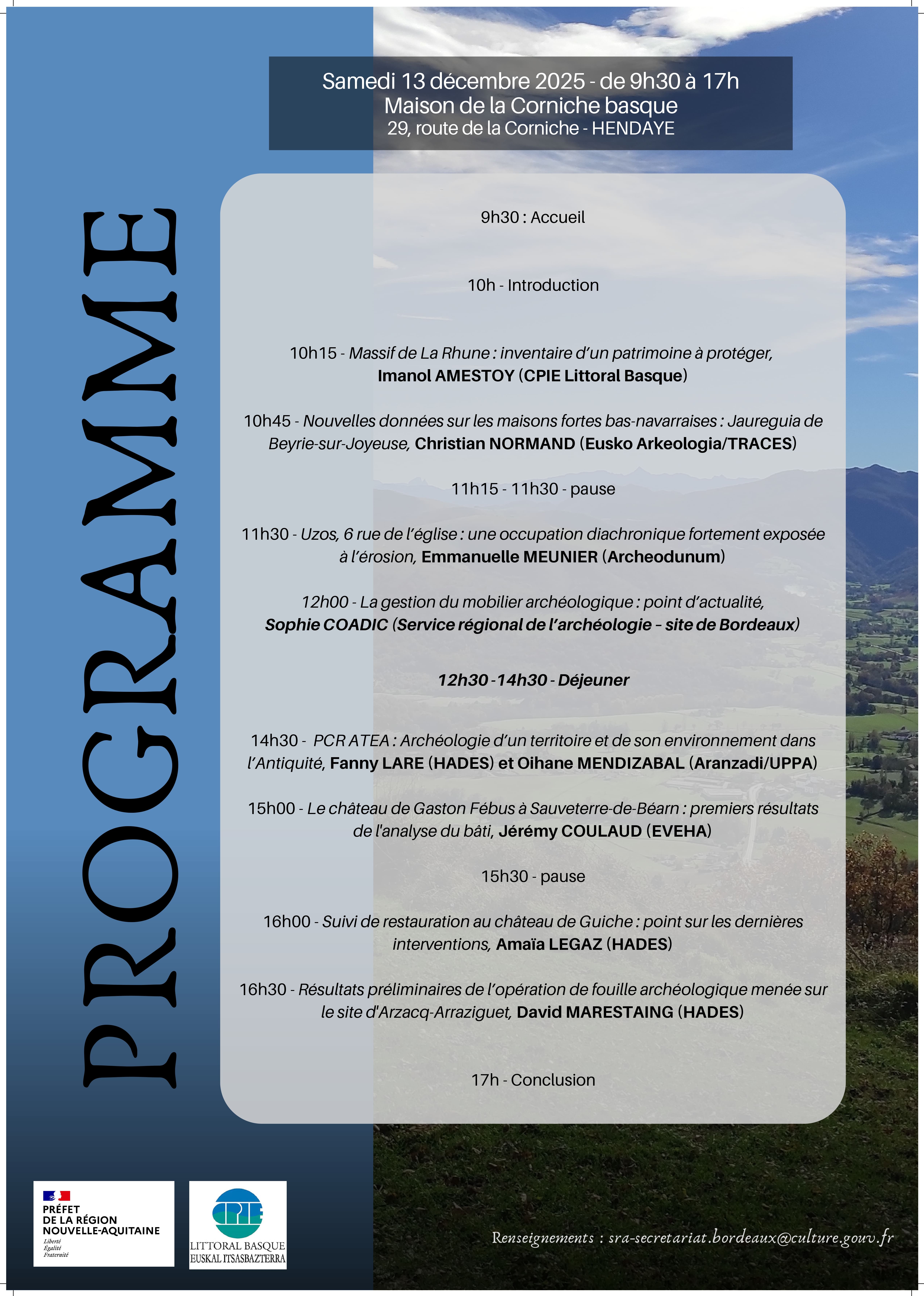 Inscriptions : sra-secretariat.bordeaux@culture.gouv.fr
