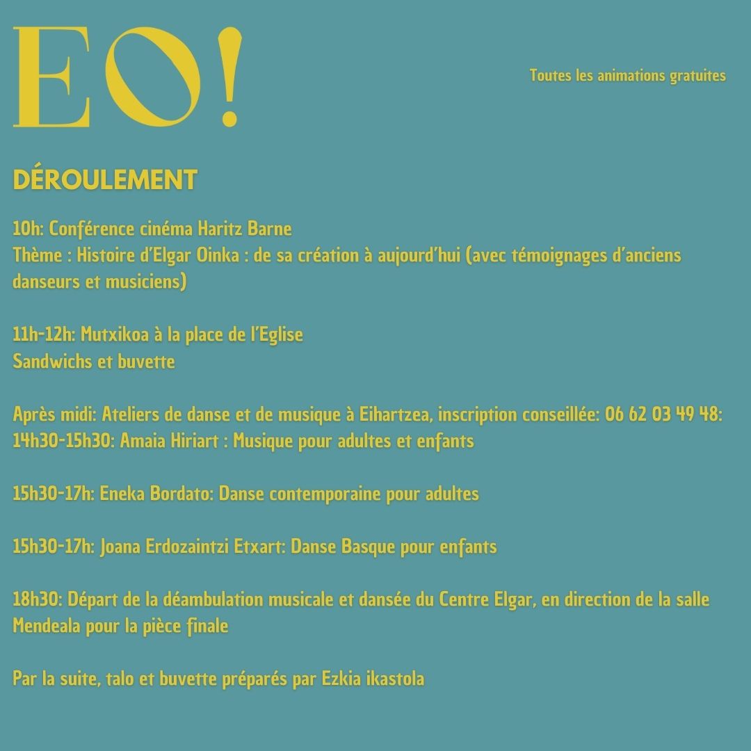 Conférence sur l'histoire d'Elgar Oinka, Mutxiko, ateliers de danse et de musique, déambulation musicale et dansée...