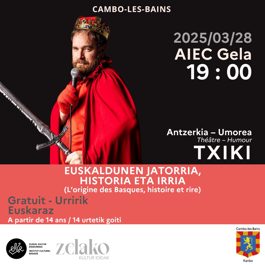 La véritable origine des basques, leur histoire et leur culture est racontée ici par l’humoriste Txiki à travers un voyage original partant du Big Bang jusqu’à nos jours.