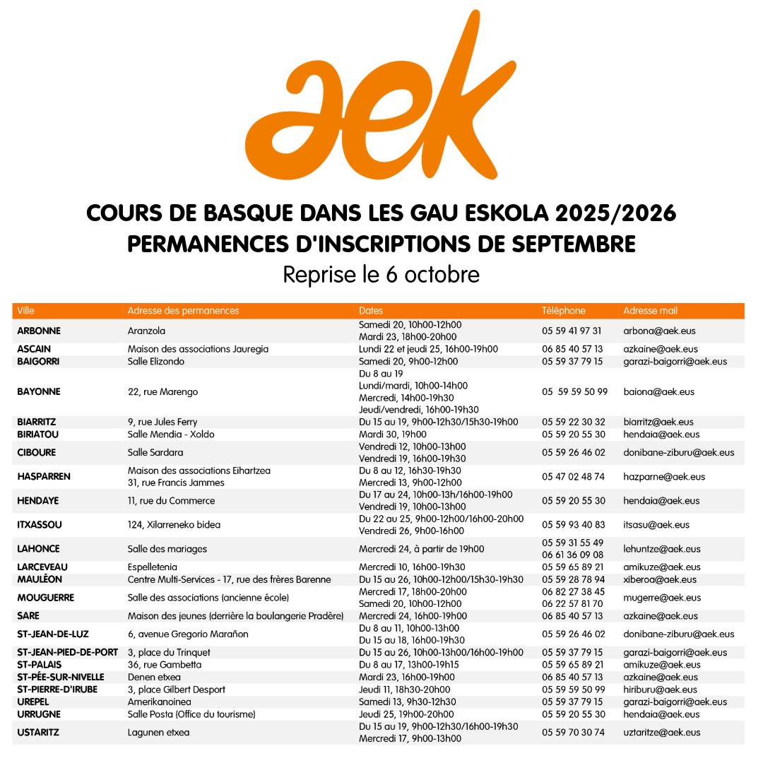 Cours de basque dans les Gau Eskola - Inscriptions