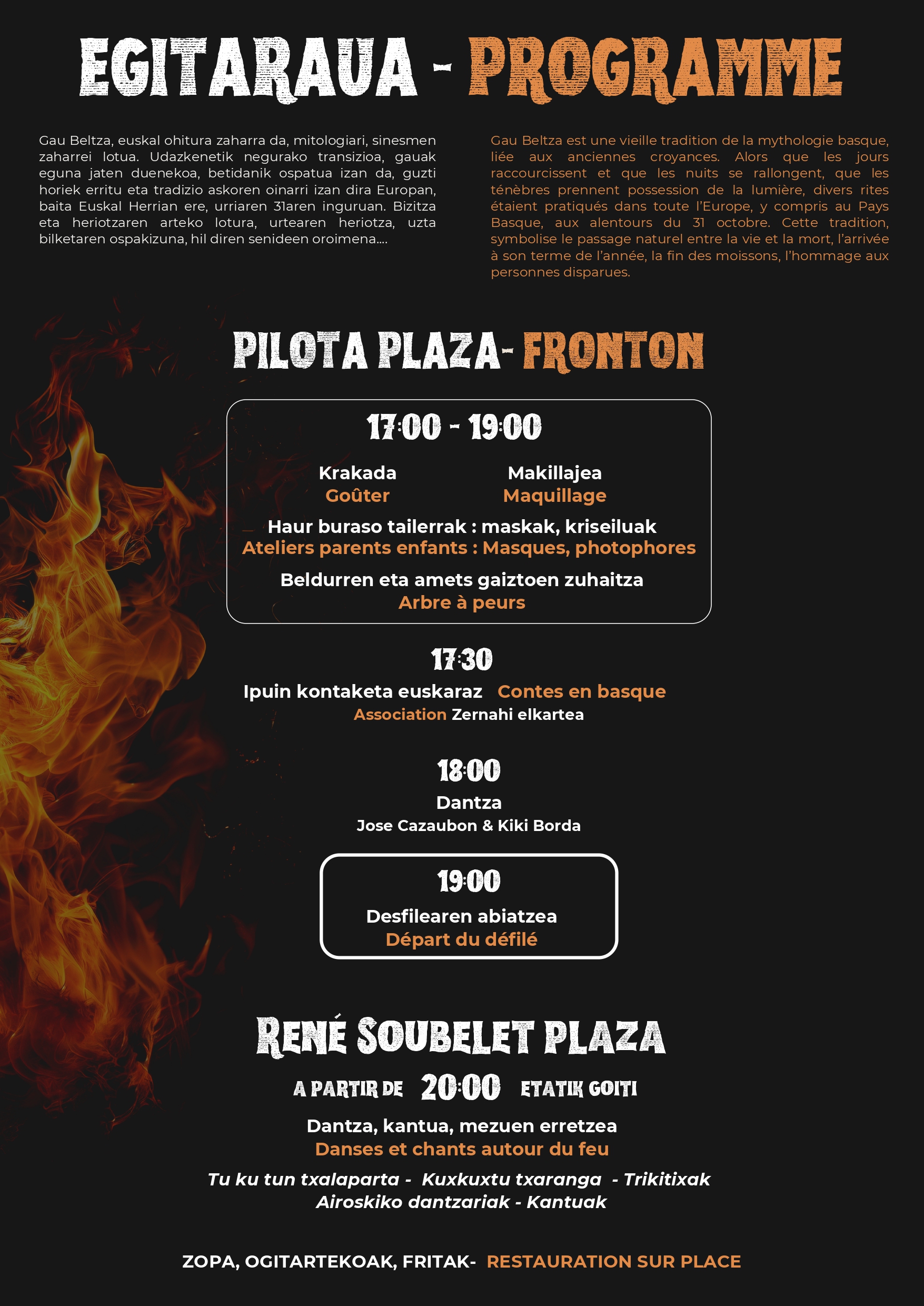 Goûter, ateliers, arbre à peurs, contes en basque, danse, défilé, chant...