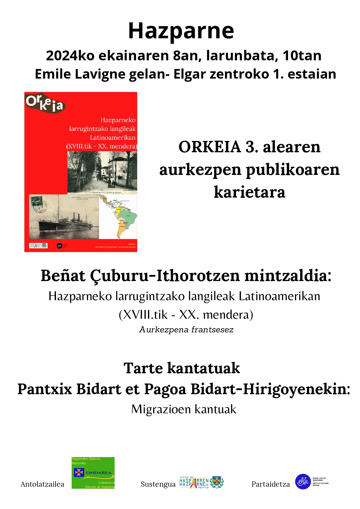 - Conférence de Beñat Çuburu-Ithorotz sur le thème Les travailleurs du cuir de Hasparren en Amérique latine (XVIIIe-XXe siècles)