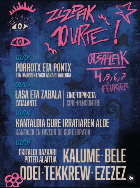 Spectacle de Porrotx eta Pontx, ciné-rencontre Lasa eta Zabala, concert en faveur de Gure Irratia...