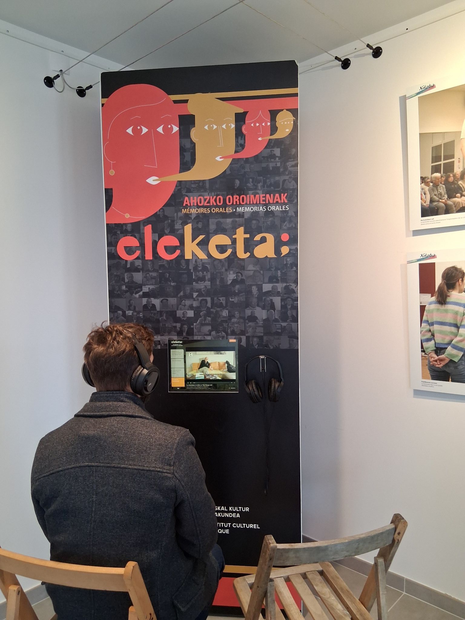 9 photographies grand-format du Championnat Xilaba 2025, organisé par l'association Bertsularien lagunak, accompagnent les bornes multimédias. Elles sont issues d'un reportage-photo réalisé par Johane Larre élève des cours de bertso du lycée Etxepare à Bayonne.